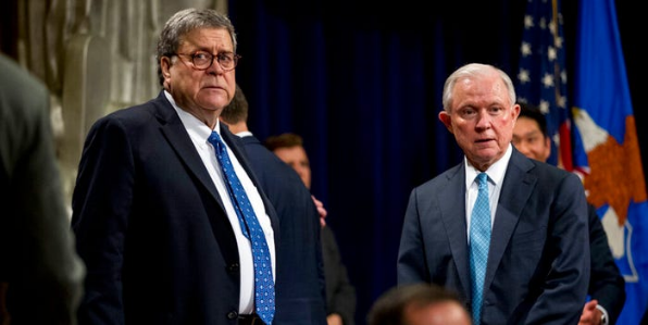 ▎特朗普第一任期的司法部长威廉·巴尔(左)和杰夫·塞申斯(右)。图源:法新社