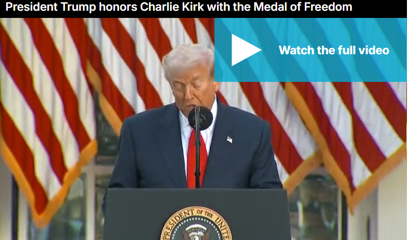 一个月后,川普在白宫为他追授总统自由勋章,这是美国平民能获得的最高荣誉。柯克的遗孀艾丽卡含泪领奖,称这份荣誉是“他最好的生日礼物”。