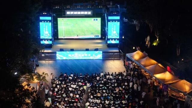 “苏超”比赛期间,江苏各地在部分商圈、街区设置“第二现场”,直播赛事,并设有游戏互动区、烟火市集区等。新华社 图