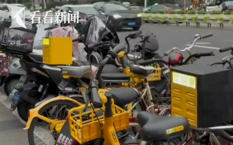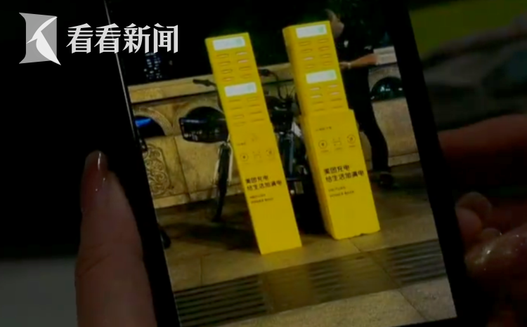 这种加装在非机动车上的共享充电宝租赁设备,悄然出现在了很多人流密集区域。像武康大楼所在的这个路口,就有四辆,不远的地铁出站口外,我们也发现了两台共享充电宝“专车”,且柜机基本来自同一品牌。