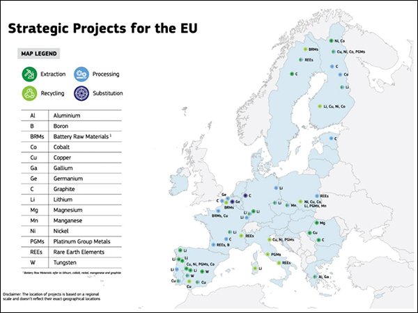 欧盟国家47个稀土和战略矿产项目分布图 欧盟委员会