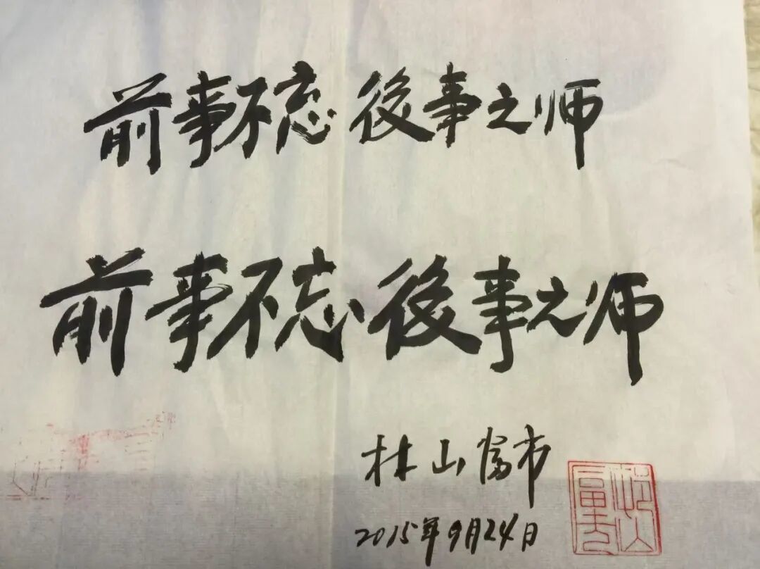在大分机场候机时,我打开了村山先生送给我的一份礼物,那是一幅字,我发现,那句话,他写了两边。
