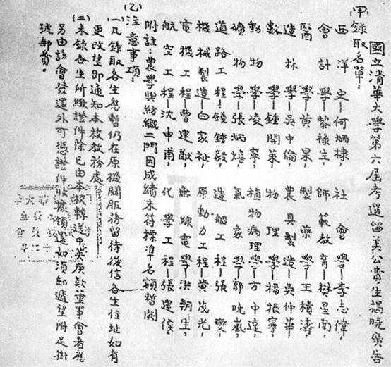 图2.国立清华大学第六届考选留美公费生揭晓广告