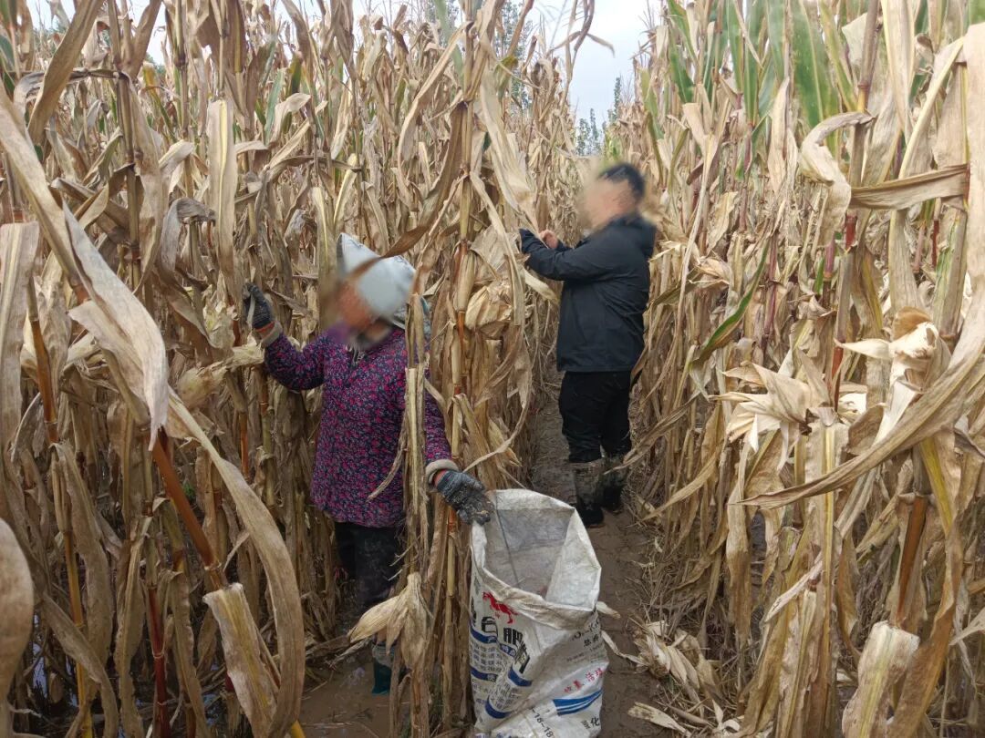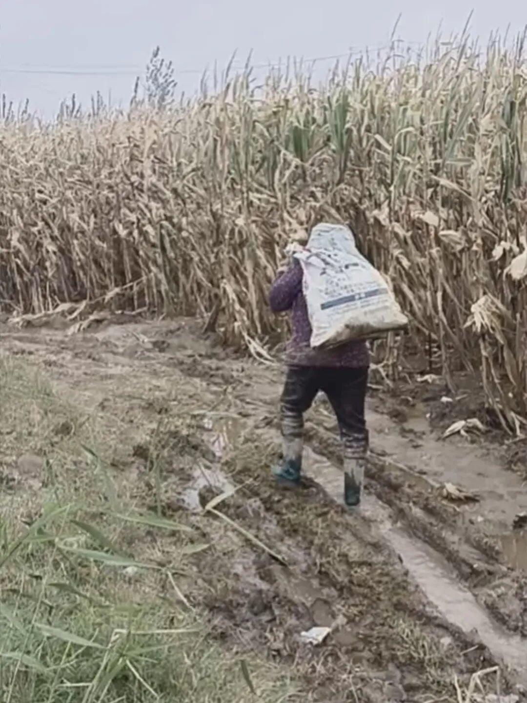 张贵自家种得不多,他算过,用履带收割机的话不划算,“今年玉米一斤只能卖四毛五”,算下来会亏本,最后只能靠自己手掰玉米,再背到五六百米外的道路上。