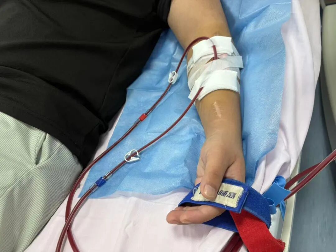 第一次上机,毛衣针粗的针头往她手臂上扎。她不敢看,全身上下都在抖。后来针在身上扎习惯了,她不那么害怕了,但躺在病床上还是想哭。