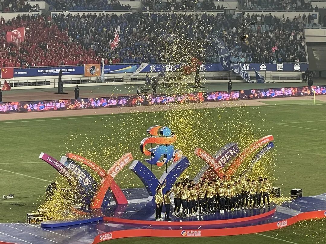 最后的决赛,他们在90分钟时间内逼平南通队,并在残酷的点球大战中4:3险胜对手,夺得首届“苏超”冠军。