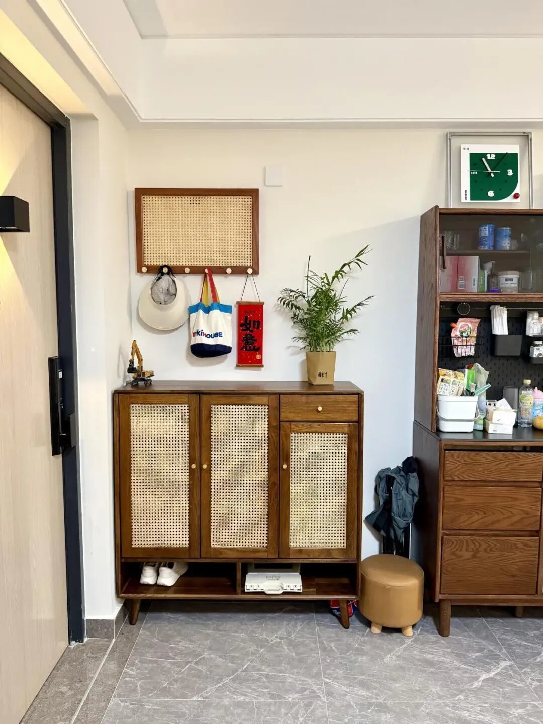 和同事聚会喝酒,大家举杯,祝贺他上车保租房。朋友来家里做客,夸他布置得好,开玩笑说,“这还买什么房”。他花了8万,从玄关开始精细布置,吸附壁灯用来烘托氛围,餐边柜、沙发趁有国补时购置的品牌,落地灯在拼多多上买的,电表也要买框遮丑,终于拼凑出“中古风”。