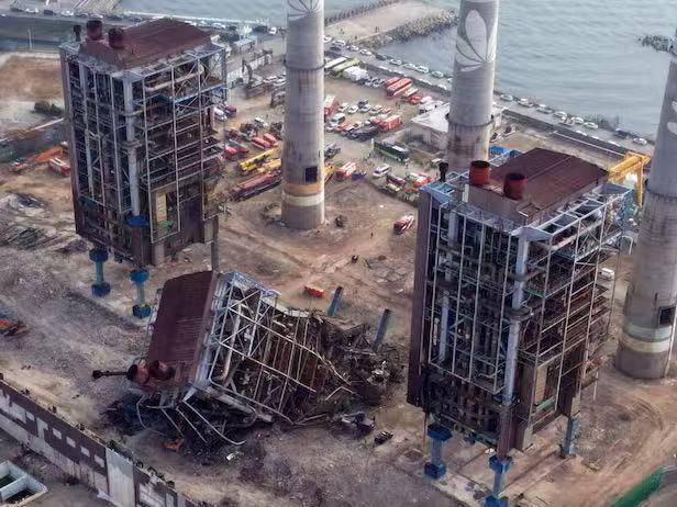 据悉,涉事发电厂在运营40年后于2021年停止运转。韩政府官员表示,厂区内有3座锅炉塔,坍塌的是其中之一。消防部门指出,为了方便后续爆破拆除,施工人员会先切断部分支撑,事故发生时,工人正在大楼6层和7层进行氧燃料切割作业,这是一种利用高温火焰切割金属的工序。