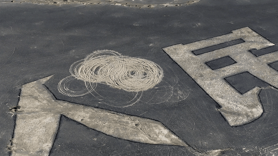 “看到地上那么多车辙印,一下子就很痛心。”陆遥说,作为一名党员,一名军属,他当时就决定必须把地标修复好。“它们可能不再具有飞行地标的功能,但是作为我们心中的精神地标值得永远传承。”在朋友帮助下,陆遥找到与大字周边自然环境相似的砾石,最终拉运了20吨石头,耗时9天对受损区域进行修复。