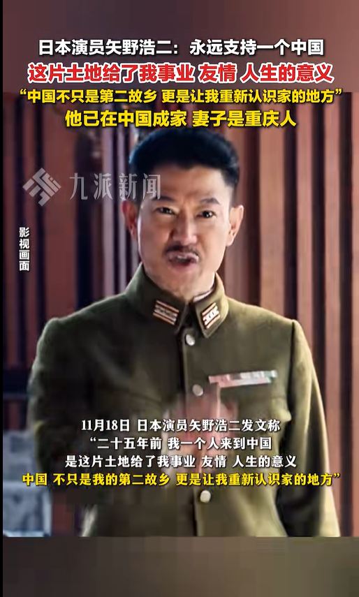 矢野浩二表示:“二十五年前,我一个人来到中国。从最初的陌生,到如今的温暖,是这片土地给了我事业、友情、人生的意义。中国,不只是我的第二故乡,更是让我重新认识‘家’的地方。在这里,我有兄弟,有家人,有浩家人的爱和陪伴与支持,我永远珍惜这一切,也永远支持一个中国,我永远爱你们!”