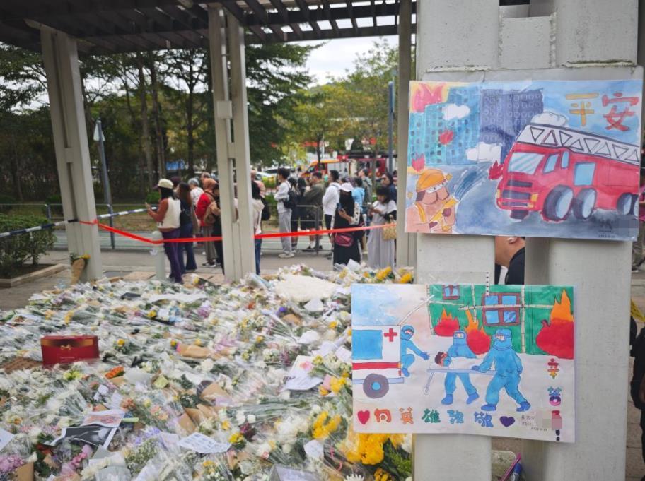 “愿逝者安息,生者坚强。”11月30日,在香港大埔宏福苑发生火灾的大楼外,众多香港及内地市民前往现场献花、写下留言,悼念在火灾中不幸遇难的逝者。