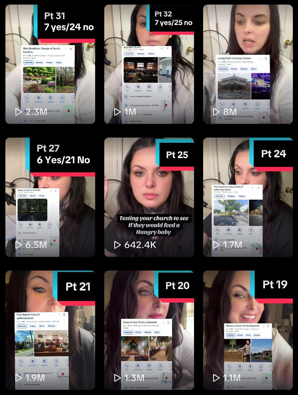 一名位于肯塔基州的TikTok网红妮卡莉·梦露(@nikalie.monroe)直播了一系列社会实验,以“贫困单亲妈妈”人设打电话给全美的各大宗教机构,向他们求助婴儿奶粉,展示后者的反应情况——结果正应了旧约圣经《申命记》中的那句话:“不可试探你的神!”