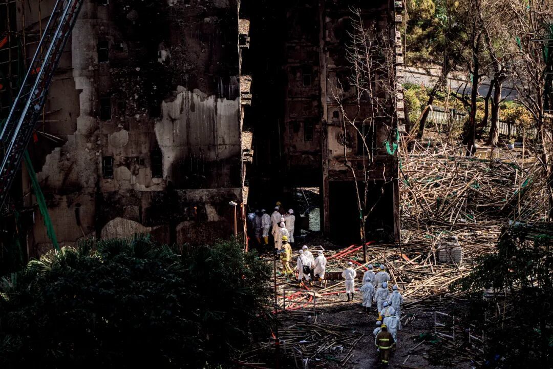 下图:11月29日,香港特区政府警务处灾难遇害者辨认组在宏福苑火灾现场开展工作。图/视觉中国