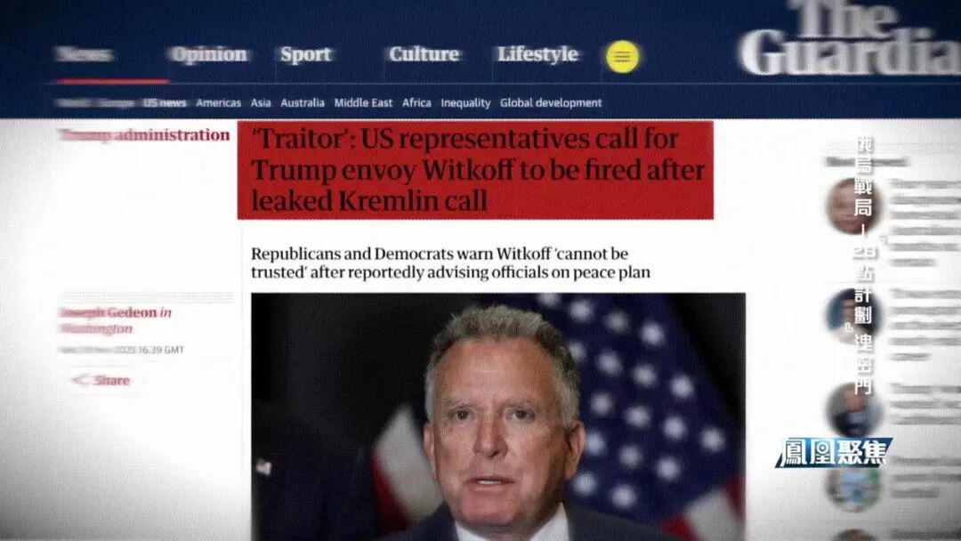 随后英国《卫报》称威特科夫为“叛徒”,引用共和党人和民主党人警告说,威特科夫“不可信任”。称美国一名共和党众议员呼吁立即解雇威特科夫。