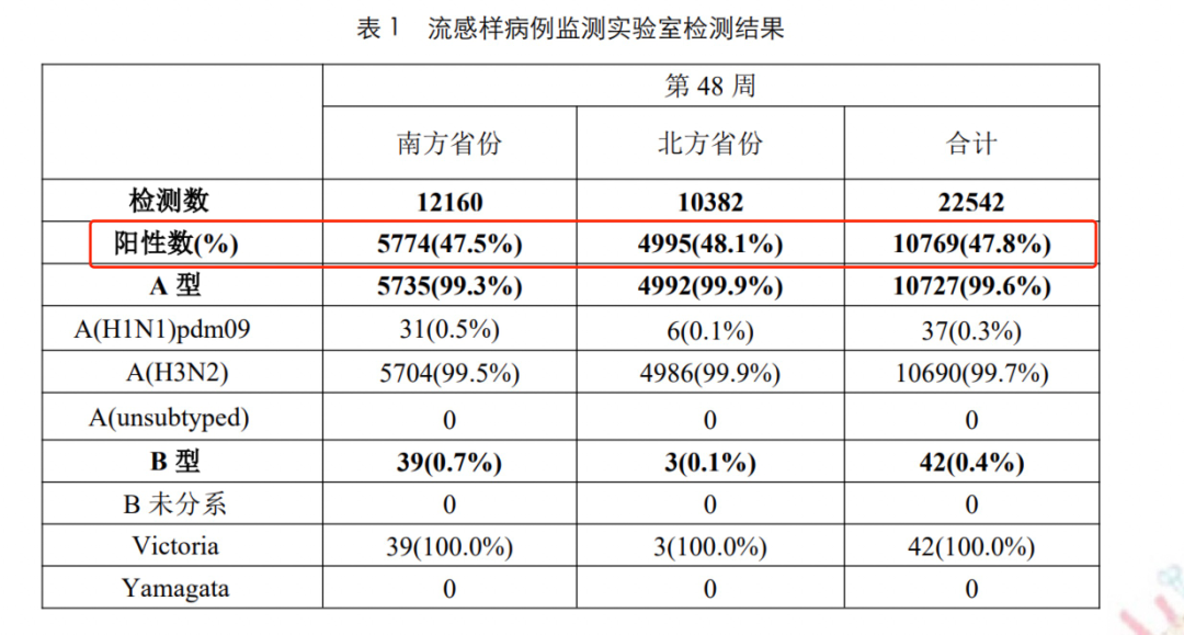 还有一个数据引起了广泛关注:流感检测阳性率达到 47.8%。