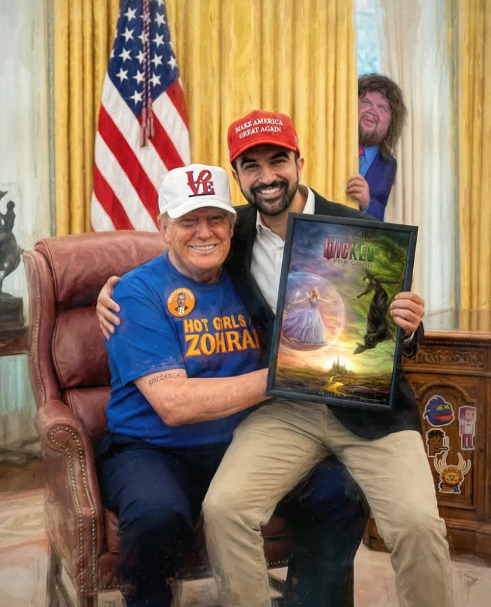 Beeple是全球身价第三高的在世艺术家,仅次于大卫·霍克尼和杰夫·昆斯。他专注于将他的工作室发展成为实验数字艺术中心,并持续在各大艺术机构展出作品,最近一次是在纽约的The Shed和洛杉矶的LACMA。他还创作了一系列迷幻的AI艺术作品,以反映美国政治的混乱局面,其中包括一幅在椭圆形办公室拍摄的肖像:纽约市市长当选人佐兰·马姆达尼坐在美国总统唐纳德·特朗普的腿上,手里拿着一幅装裱好的海报,海报上印着“邪恶:为了美好”。