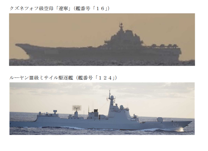日本防卫省称,海上自卫队在5日下午确认到中国海军航母“辽宁”号,在钓鱼岛和黄尾屿以北约420公里的东海海域航行。6日上午,“辽宁”号航母在3艘驱逐舰的伴随下,经冲绳本岛与宫古岛之间海域向东南方向航行进入太平洋。