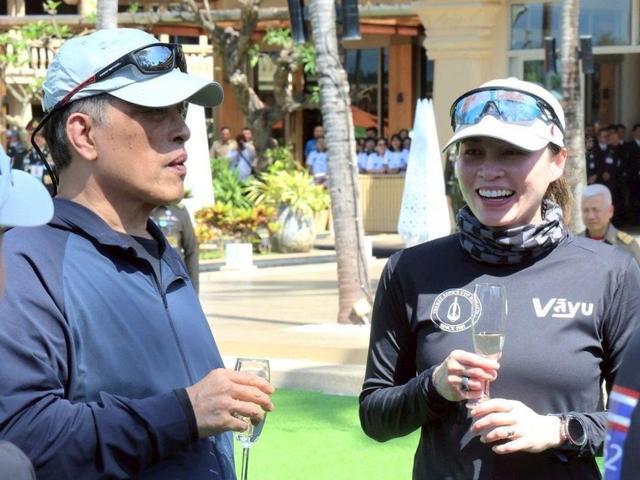 当地时间12月6日,泰国国王拉玛十世玛哈·哇集拉隆功,在普吉岛海滩打开了香槟,迎接他的王后苏提达顺利返航。
