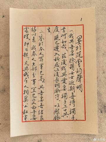 一、我与吾妻徐萌女士近期喜得独子,幸何如哉!兹后我与爱妻、独子三口共度,现已迁入新居,此后长厢厮守,以慰余生!