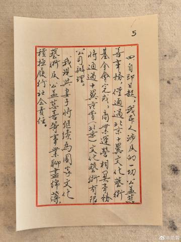 四、自即日起,我本人涉及的一切公益慈善事务,仅通过北京十翼文化艺术基金会完成;商业运营相关事务,将通过十翼范曾(北京)文化艺术有限公司办理。