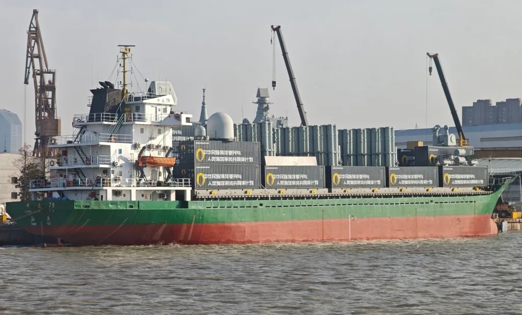报道根据这些图片分析认为,甲板上装载的集装箱能够储存、装载武器以及传感器,这些集装箱构成了临时性的上层建筑,可以用于将货船改装为某种重武装的水面战斗舰艇。这其中包括驾驶台前方安装的(疑似)旋转式相控阵雷达天线、其他三个集装箱顶部的穹顶形天线罩,可能是雷达或通信天线;船艏部分架高集装箱上方的11管30毫米近防炮、两侧较低位置的干扰弹发射器以及用于船上额外增加人员准备的气胀式救生筏。