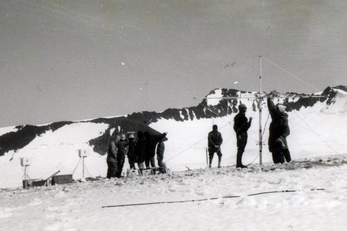 1965年7月登山队在麦金利山进行测试运行期间架设监视设备。