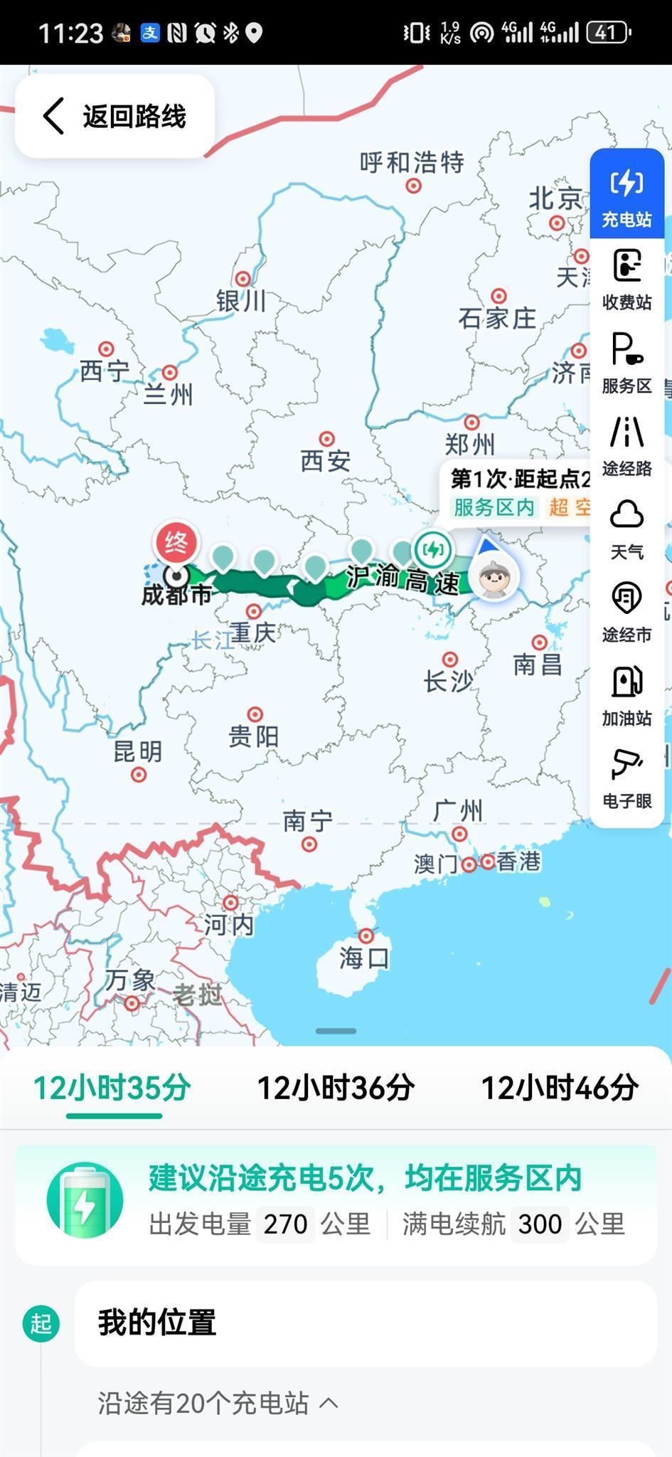 目前,使用高德等导航软件时,如果把车辆设置为新能源车,导航规划线路时,点击“长途助手”,再点“充电站”,即可显示沿线服务区的充电站以及停车充电建议。同时,新能源车厂家APP通常也提供“长途规划”功能,根据车型不同,详细给出沿途进入服务区停车充电的建议。以上两种充电规划,建议结合对照使用。