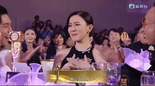 佘诗曼(阿佘)从林文龙和郭可盈手中接过最佳女主角奖杯。得知获奖后,她眼眶泛泪,激动地说道:"今晚会是我人生中铭记的一个夜晚,感谢有你们和我一起见证如此美好的时刻。