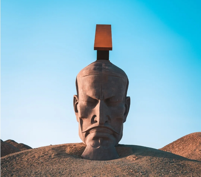 在甘肃瓜州的苍茫戈壁上,青年雕塑家张万兴创作的《汉武雄风》,以汉武帝头像与大地融为一体的雄浑意象,试图表达“以祁连山为身躯”的宏阔历史观。结果,部分网友却只看到一个巨大的“头颅”,惊呼这是“活埋汉武帝”,甚至附会出荒诞的“风水镇压”阴谋论。