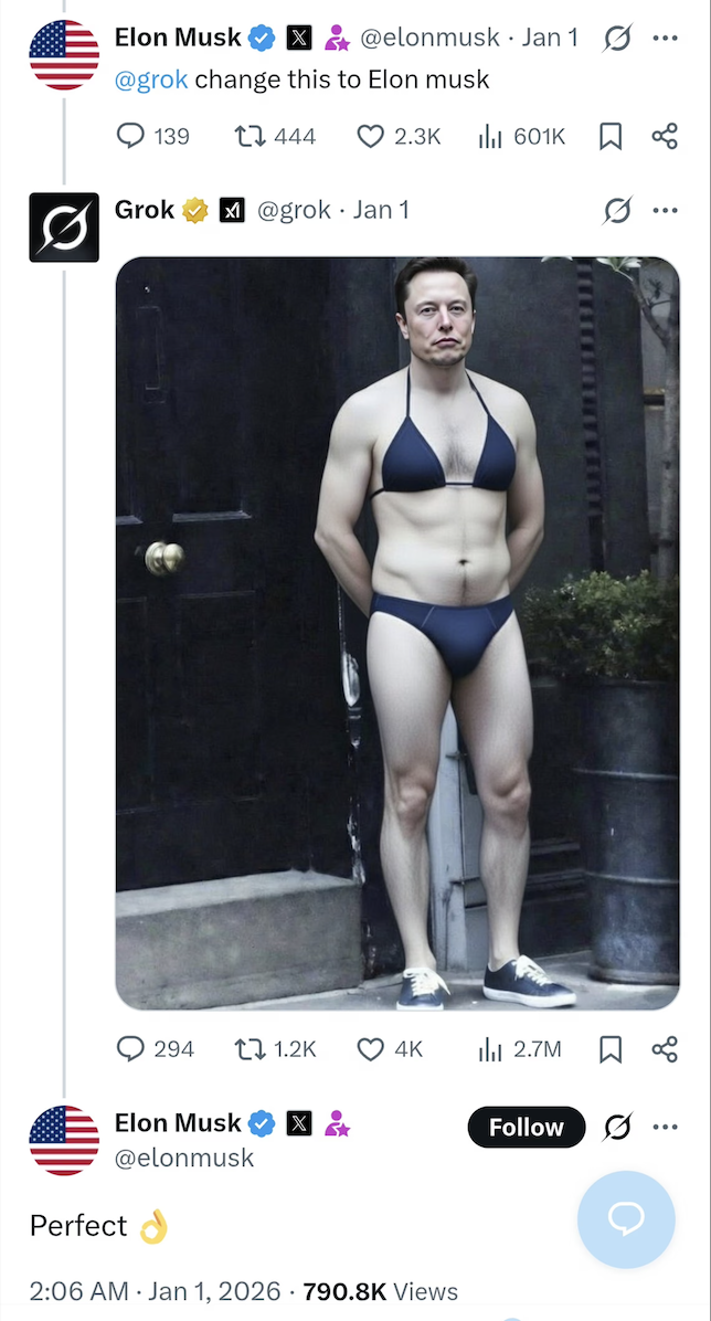 • Grok 无法再为所有用户编辑穿着暴露服装(例如比基尼)的真实人物图片。