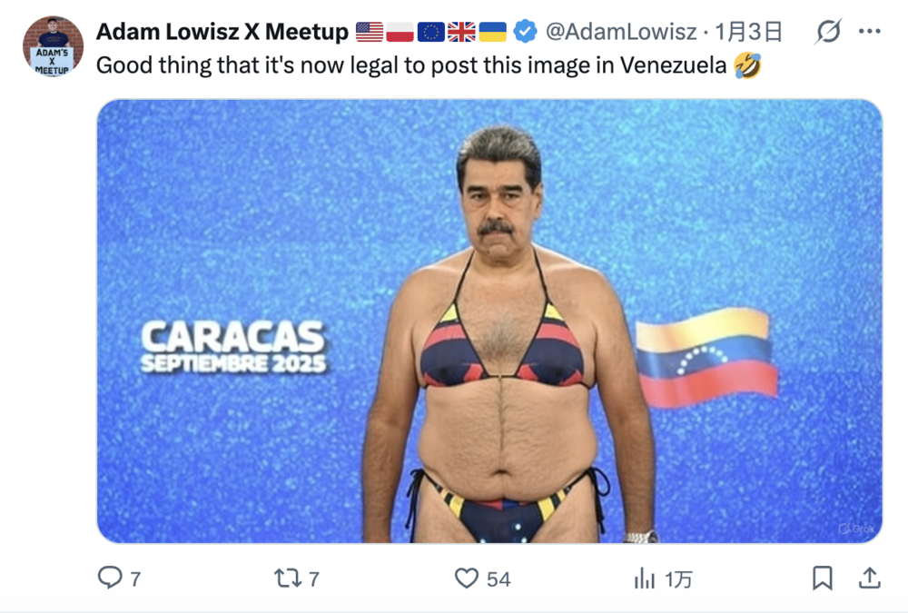 只好给特朗普和万斯也p上比基尼,要么就是指示grok生成一张“让特朗普舔我的脚趾”的照片。