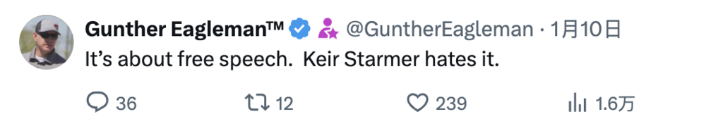 英国首相基尔·斯塔默1月15日在X上发帖