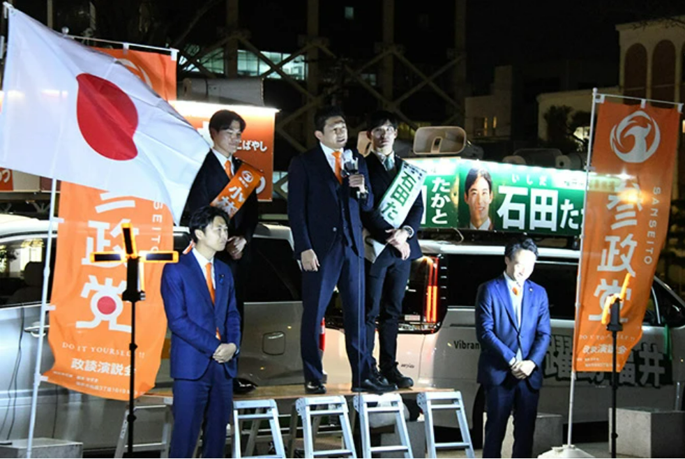 ▲“参政党”宣扬“日本优先”,排斥移民,获得很多极端右翼支持。(图源:朝日新闻)