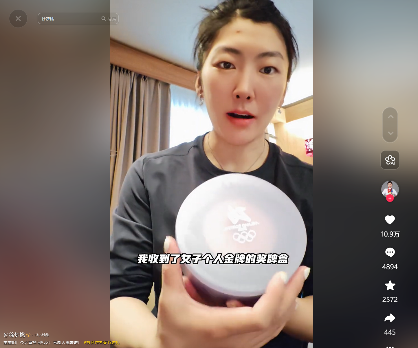 徐梦桃称,因为金牌和铜牌被她频繁地挂在一起,金牌上面已经有划痕了。