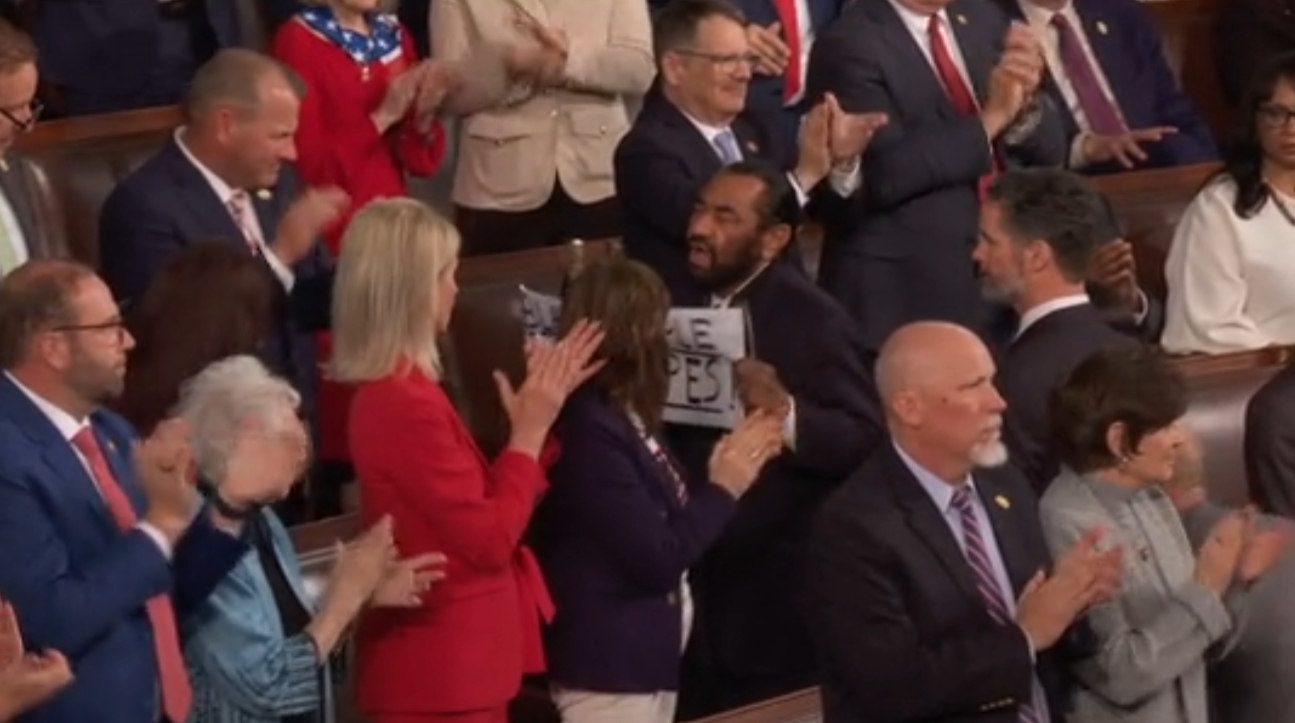 演讲刚开始,得州民主党众议员阿尔·格林就举起“黑人不是猿猴”的标语,随即被带离会场。