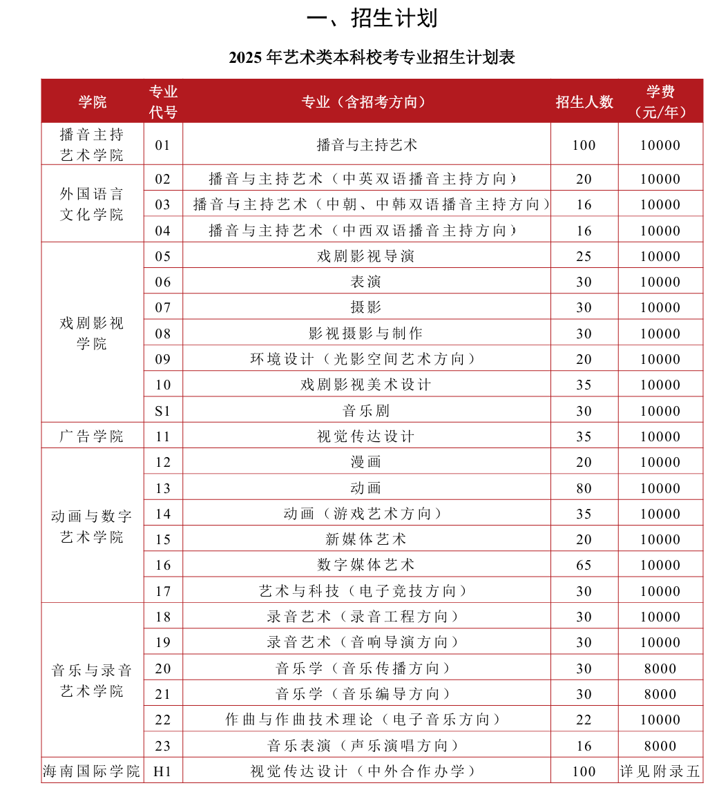 红星新闻记者查询到,中传2025年艺术类本科校考专业招生计划中,包括摄影专业在内,共有25个专业;2026年同类招生计划中,共有20个专业。