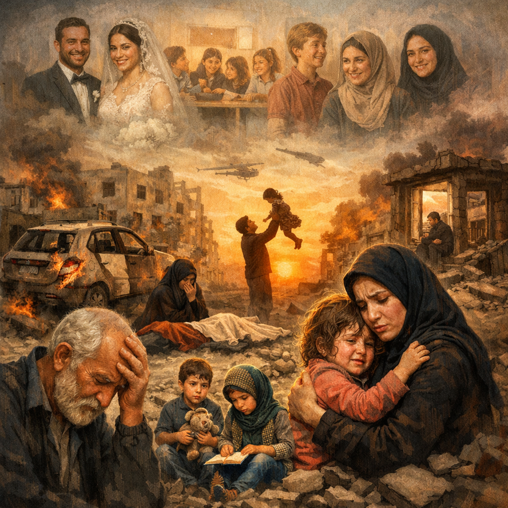 她说,最让她难受的是,美国人还在照常过日子。美国的孩子没有挨炸,没有被惊醒,没有因为爆炸声留下心理创伤,没有医院一夜之间只剩急诊,没有空气里飘着烟,没有人担心下雨是不是会变成酸雨。可伊朗的孩子不是这样。她就在身边看着邻居家的孩子因为害怕而发抖,看着那些本来身体就不好的孩子,在爆炸声中脸色越发惨白。她说,邻居家有个孩子本来就有严重的血液问题,每年都要住院好几次,父母小心翼翼地呵护着他。可这种时候,一旦孩子再受刺激、再发病,往哪里送?哪家医院还能正常收?谁敢保证路上安全?
