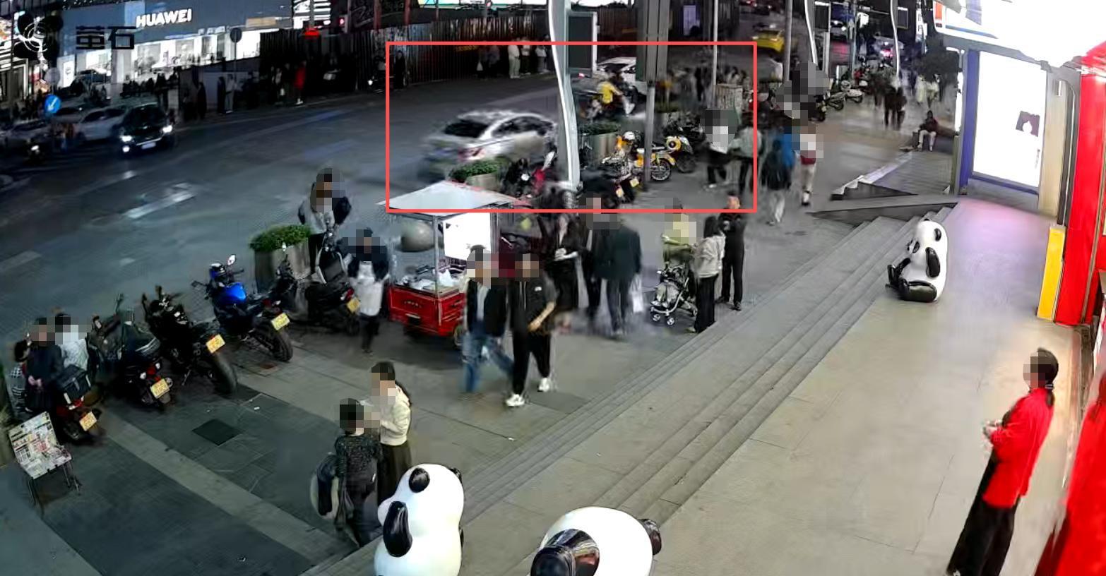 现场监控视频显示,3月22日19时19分左右,肇事轿车撞向人群,多人被撞。一名现场目击者告诉极目新闻记者,她看到车辆突然撞向人群,离她只有几米的距离,“感觉没减速,我被吓懵了。”