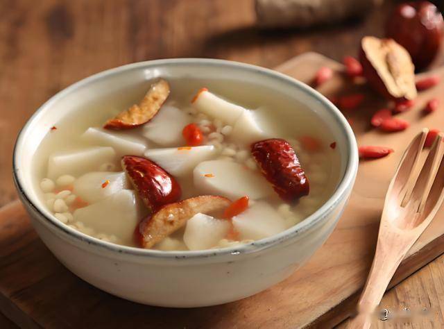 8. 享用:炖好的淮山药安神汤可以直接倒入碗中享用,温暖舒适,适合睡前食用。