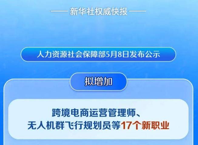 检验检测管理工程技术人员、养老服务师、跨境电商运营管理师、无人机群飞行规划员、装修管家、工伤预防咨询师、电子电路设计师、室内环境治理员、家政服务经理人、电力可靠性管理员、电力聚合运营员、农村集体经济经理人、代用茶加工工、咖啡加工工、碳纤维制品成型制作工、铁氧体磁体制造工、钢结构装配工。