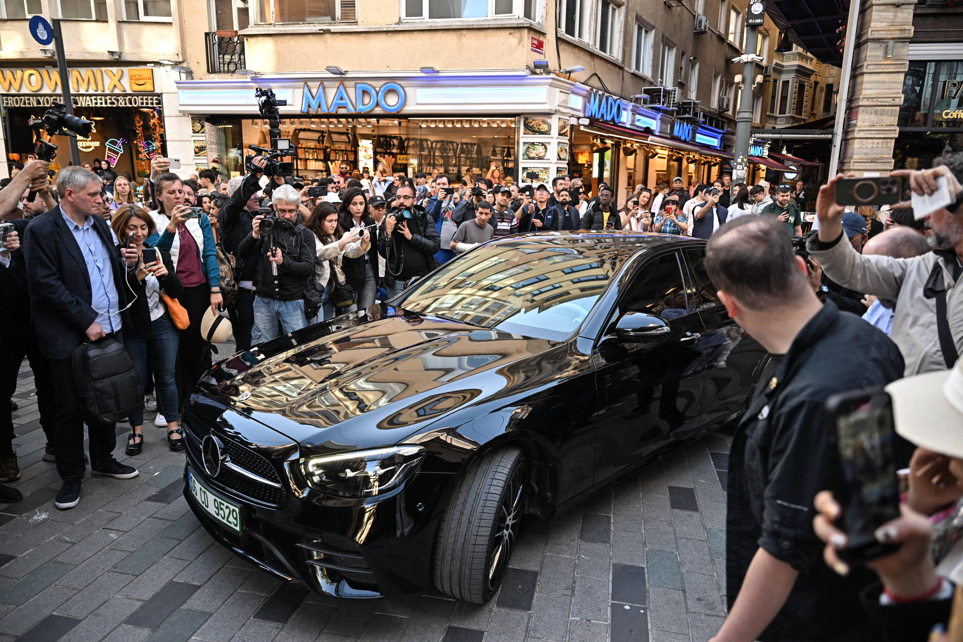 当地时间2025年5月15日,土耳其伊斯坦布尔,记者在土耳其总统办公室外聚集,等待俄乌会谈的开始。图/IC photo