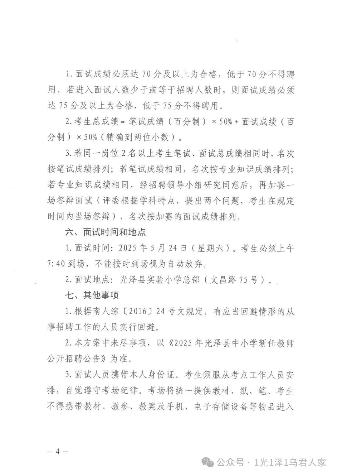 为进一步加强教师队伍建设,根据事业单位公开招聘工作人员有关规定及《福建省教育厅福建省人力资源和社会保障厅关于2025年全省中小学幼儿园教师公开招聘笔试服务工作的通知》(闽教师〔2025〕3号)、《2025年光泽县中小学新任教师公开招聘公告》(光教综〔2025〕8号)文件精神,结合我县实际,现制定本次公开招聘教师面试方案。