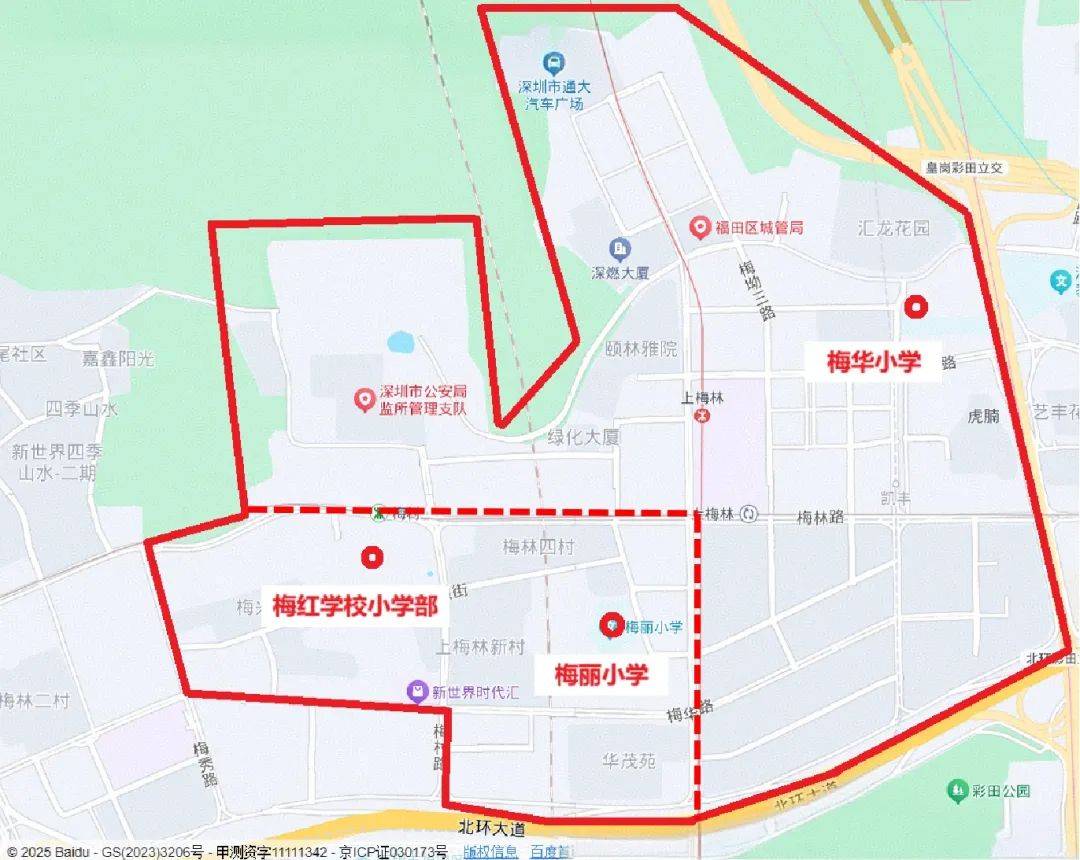 梅华小学:梅林山及中康路以东、梅林山以南、彩田路以西、梅林路及北环大道以北合围区域。