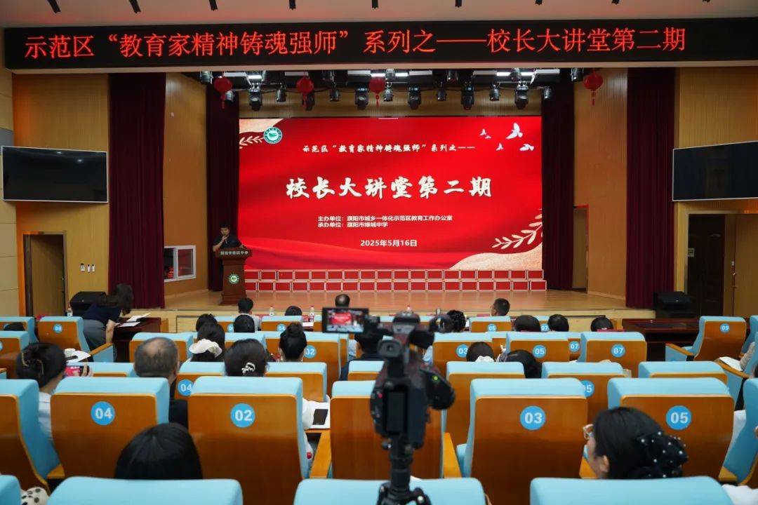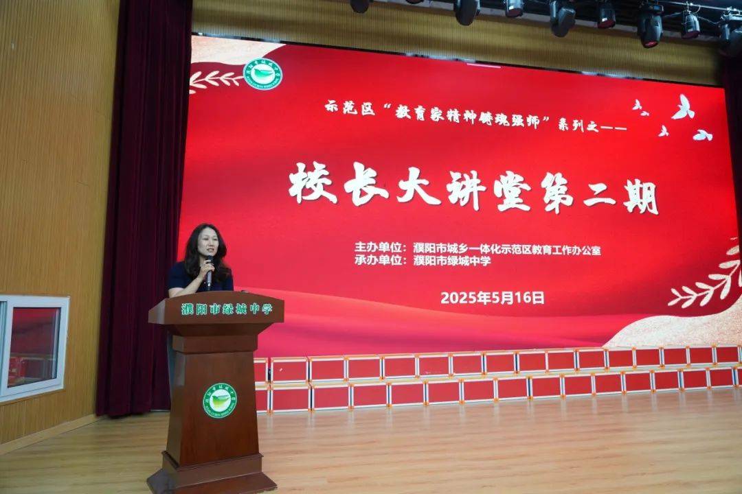 为培养担当民族复兴大任的时代新人提供坚实保障,推进新时代教育高质量发展,全面提升校长、教师队伍的专业素养与管理能力,5月16日,由濮阳市城乡一体化示范区教育工作办公室主办,濮阳市绿城中学承办的“教育家精神铸魂强师行动”系列——校长大讲堂第二期活动在绿城中学报告厅举行。