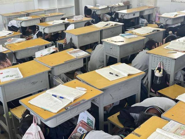 5月12日上午9:15分,随着紧急警报声和口哨声响起,全体师生迅速进入应急状态。教室内的学生立即抱头蜷身,就近躲至课桌下方或墙角三角区域,用书本保护头部,以标准姿势完成“黄金12秒”避险动作。