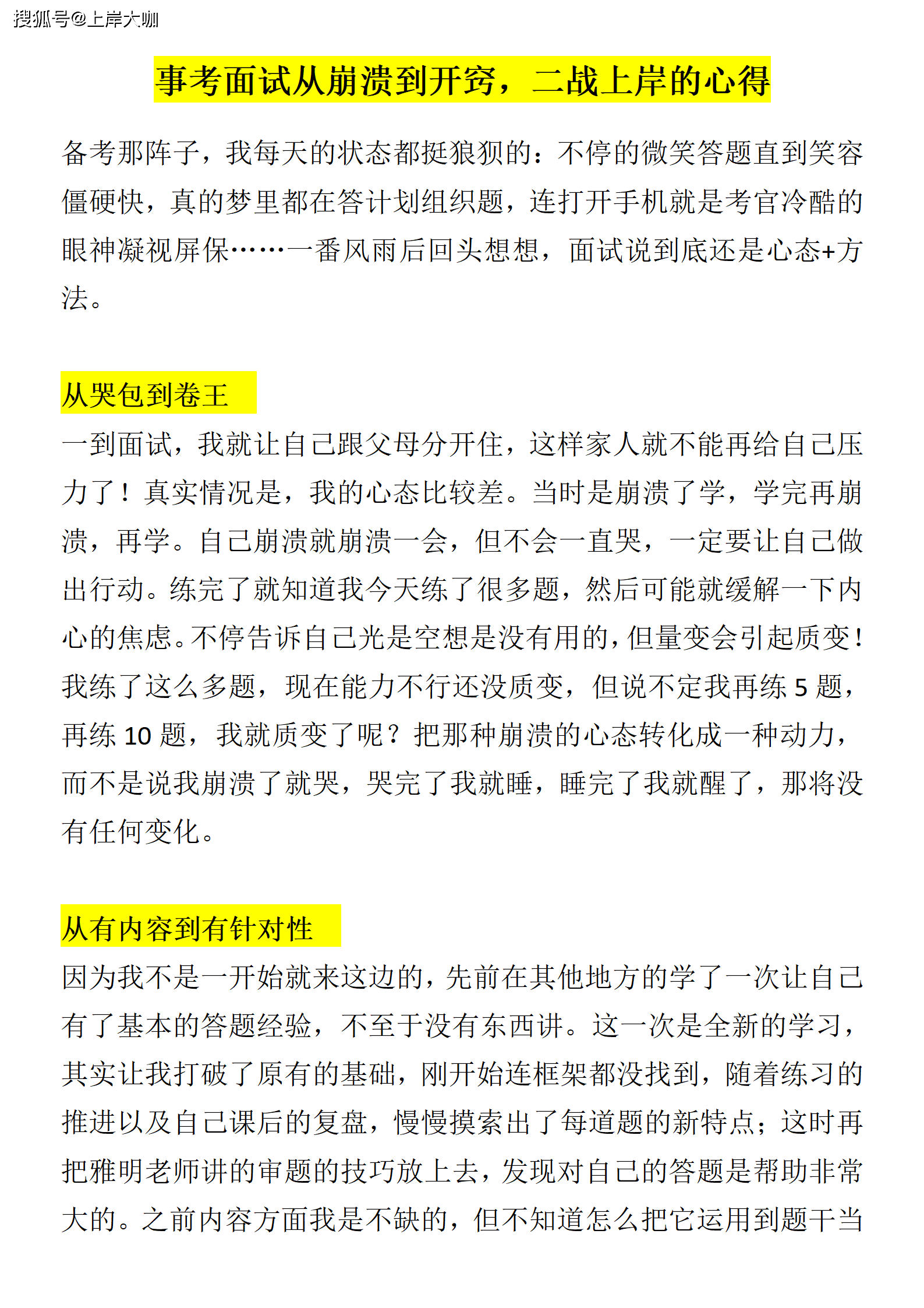 本篇经验分享,截选于苏州博涵团队面试上岸学员的沟通档案:陆同学是24年事业单位上岸的考生,去年并不是她第一次进入面试;即使已经有了面试经验,对她而言,参加面试训练依然需要面对诸多挑战。从崩溃到开窍,她经历了什么?希望她的经验可以给江苏事业单位笔试进面的同学,一些备考参考。