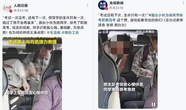姜昭鹏的义举经央视、人民日报等官媒报道后,迅速登上热搜,网友集体喊话:“必须给孩子一次考试机会!”