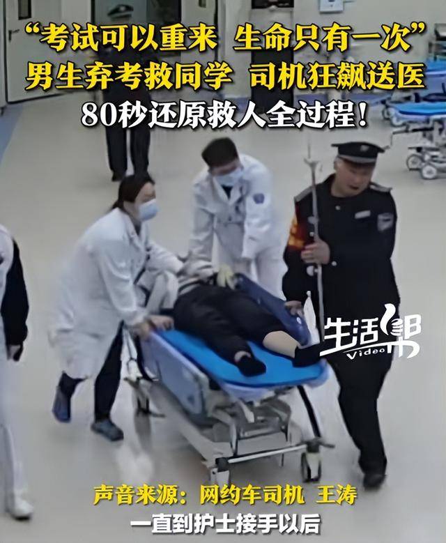 此时距离考试开考已过去半小时,面对镜头,他轻描淡写:“考试还有下一次,但是同学的生命只有一次。”