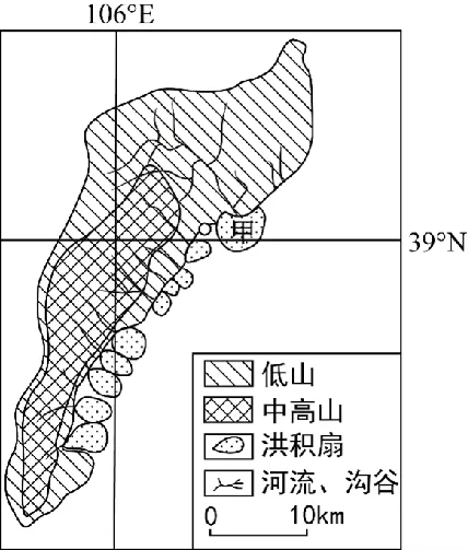 2017年全国二卷,考察了贺兰山洪积扇相关知识。