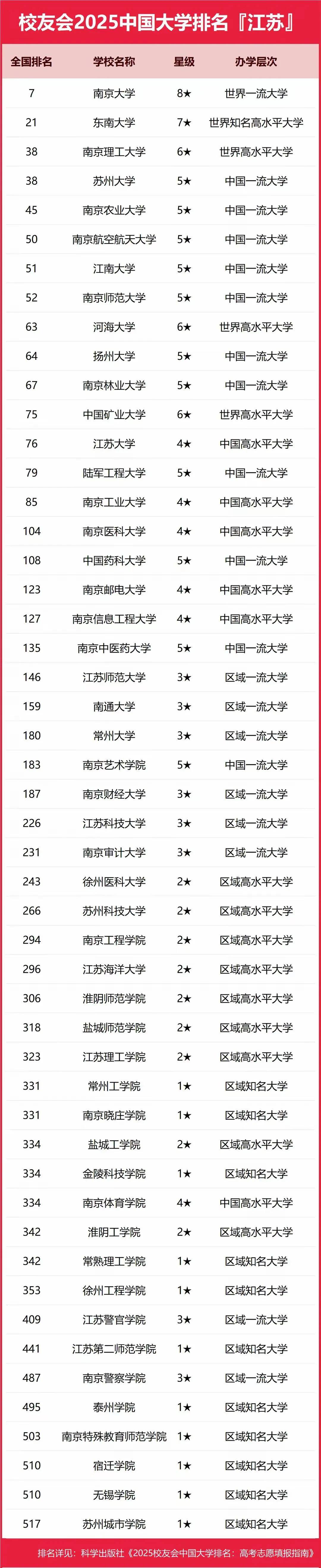 2025年江苏省高校排名由校友会发布,榜单覆盖省内49所主要院校。江苏省作为中国高等教育与经济的双料强省,坐拥南京、苏州等科教名城,高校资源密集且竞争激烈。